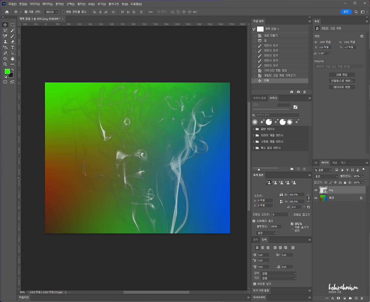 다운 받은 연기 이미지 파일을 포토샵으로 불러옵니다.