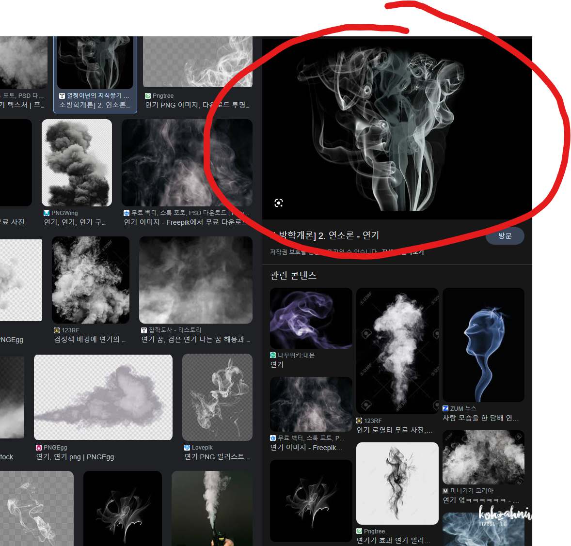 우선 연기 이미지를 먼저 준비해줍니다. (예시 이미지로 쓰는 것이니, 반드시 실제 사용 시에는 저작권에 문제없는 이미지를 사용하시기 바랍니다.) 구글에 '연기'만 검색해도 다양한 이미지가 나옵니다.